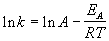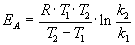 и записывают экспериментальные данные в координатах ln k - 1/T. Тангенс угла наклона полученной прямой равен -EA / R.