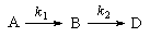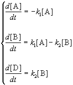 Пусть в начальный момент времени есть только вещество A. Применим к этой системе закон действующих масс и принцип независимости химических реакций: