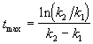 Величина этого максимума определяется отношением констант k2 / k1. Если оно велико, т.е. k2 >> k1, то промежуточный продукт не успевает накапливаться и его концентрация в любой момент времени мала. В этом случае для анализа кинетических уравнений можно использовать приближенный метод квазистационарных концентраций.