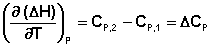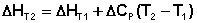Cp - разность изобарных теплоемкостей продуктов реакции и исходных веществ. Если разница T2 - T1 невелика, то можно принять