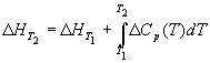Если проинтегрировать выражения от Т = Т1 до Т = Т2, считая ΔСp (ΔСv) не зависящим от температуры, получим интегральную форму закона Кирхгофа:
