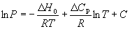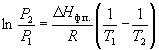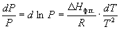 По этому уравнению можно рассчитать энтальпию испарения или возгонки, исходя из значений давления пара при двух разных температурах.