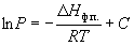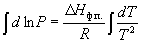 где C – константа интегрирования. Следовательно, зависимость lnP от 1/Т должна быть линейной, а наклон прямой равен –