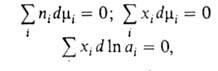 -хим. потенциал компонента в стандартном состоянии, R-газовая постоянная). Форма записи Гиббса - Дюгема уравнения для коэффициентов активности