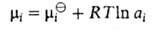 µi = µ*i + RT lnai, ∆µi = RT ln (ai, 2 /ai, 1),