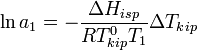 — теплота испарения р-ля, в интервале от Т кипения чистого р-ля до Т кипения р-ра принимаемая постоянной. Индексом «1» обычно обозначается р-ль.