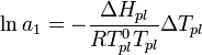 где через обозначен химический потенциал чистого компонента, зависящий только от давления р и температуры Т, и где R — газовая постоянная.