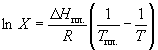 Растворимость твердого вещества в идеальном растворе при температуре T описывается уравнением Шредера: