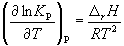 Количественно зависимость константы равновесия от температуры описывается уравнением изобары химической реакции (изобары Вант-Гоффа)