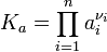 Ka — константа химического равновесия. Индекс «a» здесь означает использование величины активности в формуле.