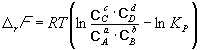 rF в химической реакции при заданных (не обязательно равновесных) парциальных давлениях Pi или концентрациях Ci компонентов можно рассчитать по уравнению изотермы химической реакции (изотермы Вант-Гоффа):