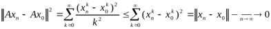 . Ограниченность F доказана. Чтобы доказать его замкнутость, докажем, что A – непрерывный оператор, тогда, в силу замкнутости шара, получим замкнутость F. Пусть