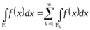 Замечание. Теорема 3 о полной аддитивности интеграла Лебега справедлива и в случае произвольных суммируемых функций с изменением: во втором