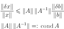 Чем больше норма обратной матрицы А-1, тем на меньшую точность можно расчитывать.