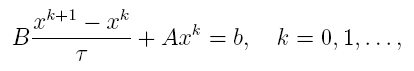 B - некоторая матрица, тау - итерационный параметр. Может быть записана для метода верхний релаксаций, Якоби, Гаусса-Зейделя...