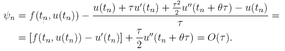 Сеточная функция Ksi_n называется погрешностью аппроксимацией дифференциального уравнения [ du/dt = f(t, u), t>0, u(0)=u0 ] уравнением м.Эйлера (№ 53).