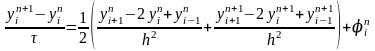 Утверждение 24.2. Схема (24.1) имеет второй порядок аппроксимации как по , так и по h, если только in = f(xi,tn+0.5)+O(2+h2).