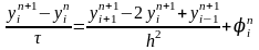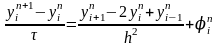 Определим равномерную сетку h с шагом h по пространственной перменной и шагом по временной переменной. Для сеточной функции y(x,t) введем обозначение yin=y(xi,tn), где i = 0...N (hN = 1), n = 0...K (K=T). Правую часть заменим приближенно сеточной функцией in.