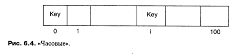 В последнем примере предыдущего раздела (поиск в массиве) есть три команды перехода в каждой итерации цикла: условный переход цикла for, условный переход if-оператора и переход от конца цикла обратно к началу. Проблема поиска в данном случае состоит в том, что мы проверяем сразу два условия: найдено ли значение key и достигнут ли конец массива? Используя «часового» (sentinel) *, мы можем два условия заменить одним. Идея состоит в том, чтобы ввести в начале массива дополнительно еще один элемент («часового») и хранить в нем эталонное значение key, которое нужно найти в массиве (рис. 6.4).