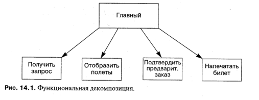 При проектировании программы естественный подход должен состоять в том, чтобы исследовать требования в терминах функций или операций, то есть задать вопрос: что должна делать программа? Например, программное обеспечение для предварительной продажи билетов в авиакомпании должно выполнять такие функции: