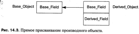 потому что производный объект является базовым объектом (плюс дополнительная информация), и при присваивании дополнительная информация может игнорироваться (см. рис. 14.3).