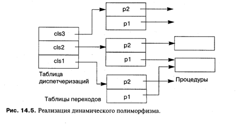 к правильной подпрограмме, и следует выполнить динамическую диспетчеризацию. Аналогичная ситуация возникает, когда используется ссылочный параметр, как было показано выше.