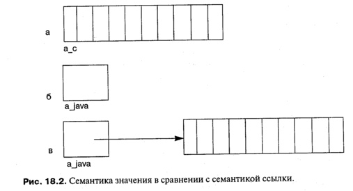 Язык Java (подобно Eifiel и Smalltalk) использует семантику ссылки вместо семантики значения.