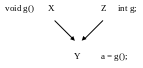 Статический тип px- Х, py- Y, но при присваивании, мы уже начинаем различать статический и динамический типы. Допустимо (так как объектам производных типов можно присваивать объекты базового типа):