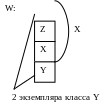 Это простое и очевидное расширение понятия единичного наследования: Так будет выглядеть структура класса Х(часть, относящаяся к классу Y; часть, относящаяся к классу Z; и часть, относящаяся к классу Х):