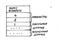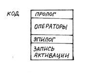Запись активации – особое место (область памяти), где хранятся локальные и временные данные, вспомогательная информация о контексте (например, адрес возврата), необходимая для организации вызова и возврата. Конкретный вид записи активации зависит от самого языка.