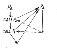 A -> P – вызывается процедура А, и она вызывает процедуру Р. Прежде, чем произойдет return из А, должен произойти return из Р.