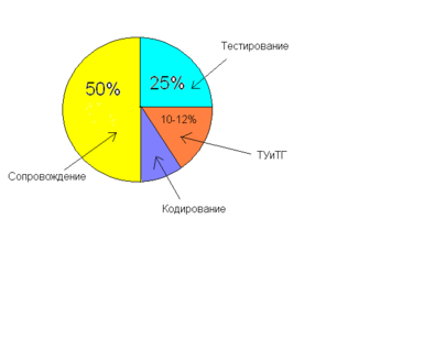 Выяснилось следующее. Затраты на написания программного обеспечения – это всего лишь 50 процентов от затрат. Пока программа не снята с учета, пора вложить те самые оставшиеся 50 процентов на сопровождение ПО. А «первые» 50 процентов – это, собственно, что? Собственно программирование – это 10 процентов. 25 процентов уходит на тестирование. Остальное – ТУ и ТГ.