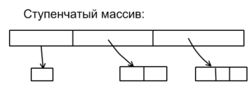 Элементы ступенчатого массива представляют собой ссылки на сответствующие обьекты(массивы)