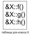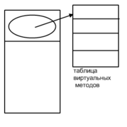 При этом составляется таблица виртуальных методов – содержит виртуальные методы и их адреса.