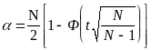 нам неизвестно, а известна лишь ее оценка (см. выше), Смирнов предлагает вычислять вероятность того, что величина t превзойдет некоторый заданный максимум