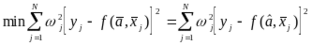 Для критерия минимума взвешенной суммы квадратов оценки неизвестных коэффициентов могут быть найдены из выражения