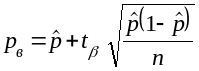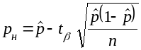 Базируясь на асимптотических свойствах биноминального распределения ( его стремление к нормальному распределению ), можно получить следующие соотношения для доверительных границ :