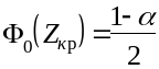 и по таблице функций Лапласа находится критическая точка в соответствии с равенством