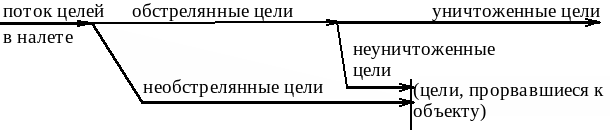 Вероятность поражения комплексом самолета - Р. Требование, заставшее все каналы занятыми, ставится в очередь. Время пребывания в очереди случайно, со средним значением Точ, т.е. на каждое требование, находящееся в очереди, действует пуассоновский поток уходов с интенсивностью