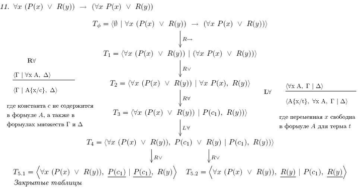 значит: применяем L(любое) к T2=> T3= <(), P( t ) v R( y ) | Vx P(x),R(y)>