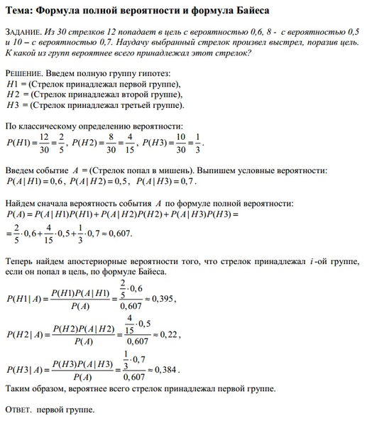Наудачу выбранный стрелок произвёл выстрел, поразив цель. К какой из групп вероятнее всего принадлежал этот