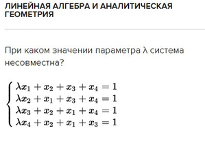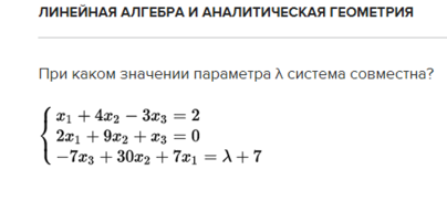 Нужно было сравнить ранг матрицы с рангом расширенной матрицы (т. Кронекера-Капелли) при различных значениях параметра.