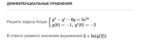 y'' - y' - 2y = 6 exp(-2x), y(0)=3, y'(0)=-8, найти значение 8+ln(y(1))