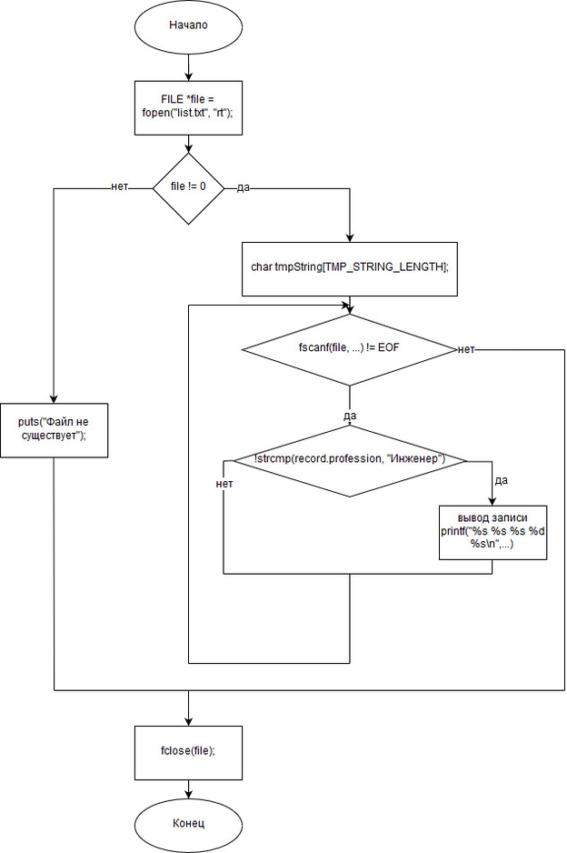 if (!strcmp(record.profession, "Инженер"))