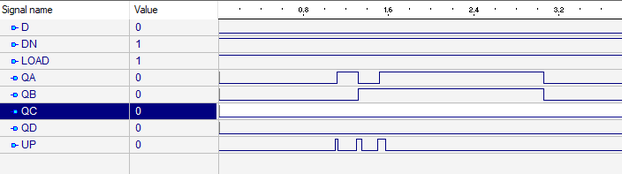 Задержка триггера – 16 секунд. Задержка элемента И – 10 секунд. TD = 26 нс. Tсл_конв= TD= 26 нс.На диаграмме видно, что значение появляется через 3 такта.