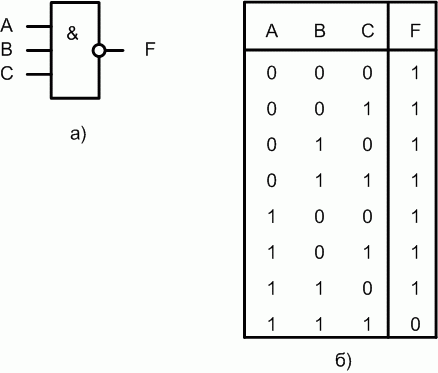 Таблица истинности функции 3И-НЕ: