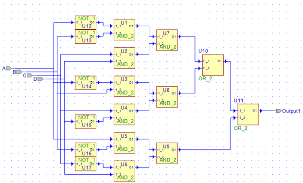 В данной схеме будет использовано 4 элемента NOT, 9 элементов 2И, и 3 элемента 2ИЛИ