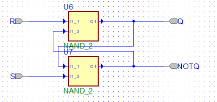 Схема триггера на элементах И-НЕ. Активный логический уровень - низкий