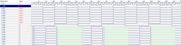 Определить максимальную частоту синхросигнала, на которой работает регистр и задержки выходного сигнала по отношению к активному фронту синхросигнала и задержки перехода выходов в высокоимпедансное состояние и сравнить данные моделирования с указанными в справочнике.