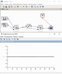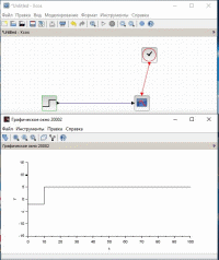Схема взаимодействия блоков и осциллограмма работы источника сигнала STEP_FUNCTION